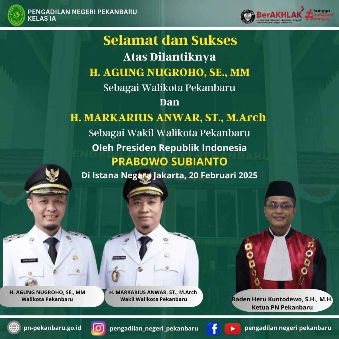 Atas Dilantiknya H. AGUNG NUGROHO, SE., MM Sebagai Walikota Pekanbaru