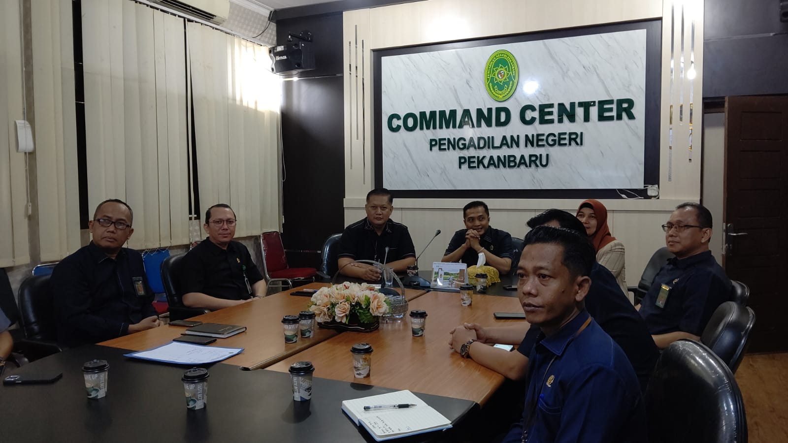 Pekanbaru - Selasa, 25 Februari 2025. Bertempat di Ruang Command Center, Ketua Pengadilan Negeri Pekanbaru Bapak Raden Heru Kuntodewo, S.H., M.H. di dampingi oleh Wakil Ketua Bapak Delta Tamtama, S.H., M.H. dan dihadiri oleh Hakim, Panitera, Sekretaris, Tim ZI pada Pengadilan Negeri Pekanbaru mengikuti Sosialisasi Bimbingan Teknis Zona Integritas (ZI) Sewilayah hukum Pengadilan Tinggi Riau secara Daring.