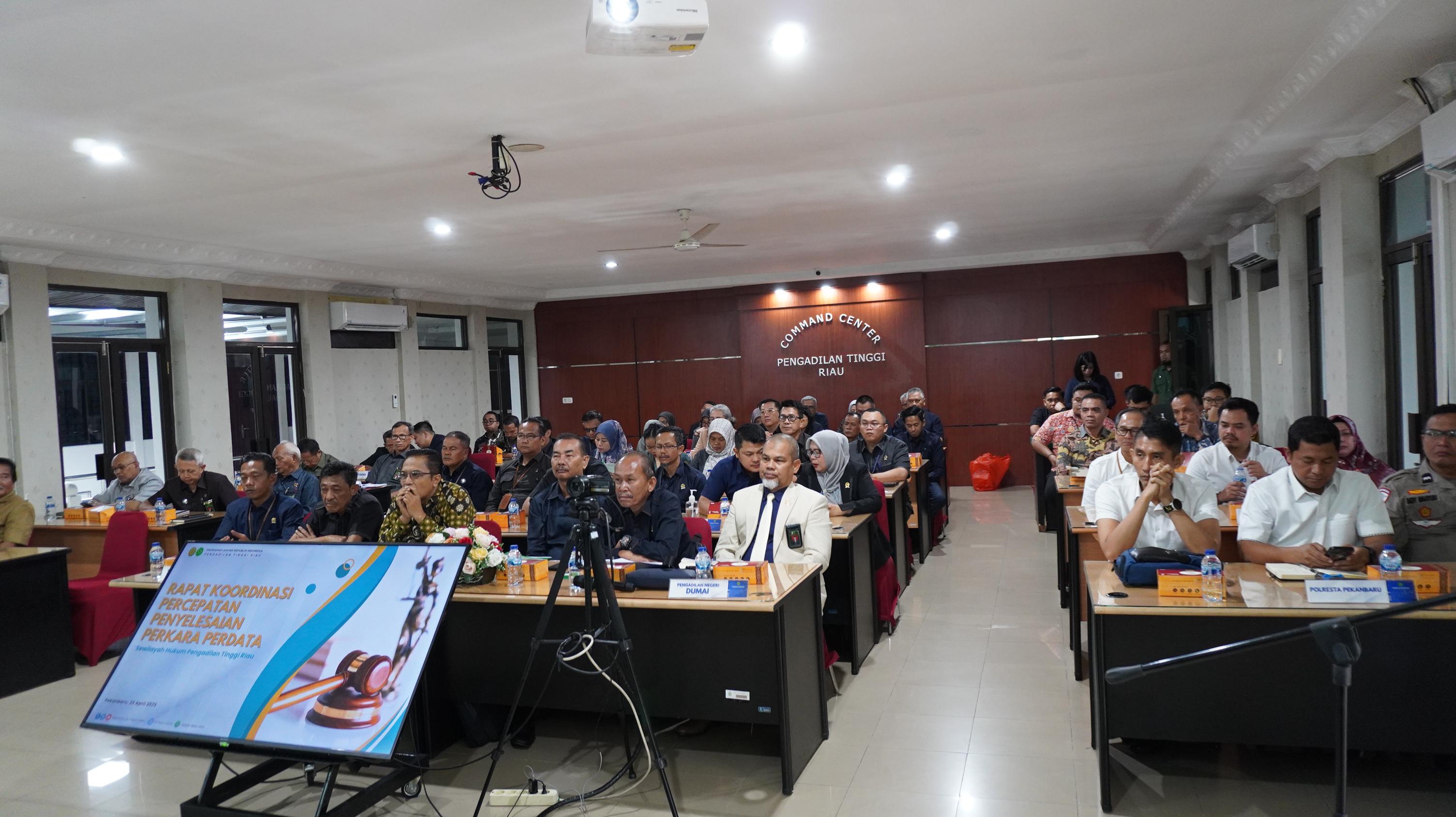 Pengadilan Negeri Pekanbaru mengikuti Rapat Koordinasi Percepatan Penyelesaian Perkara Perdata Sewilayah Hukum Pengadilan Tinggi Riau