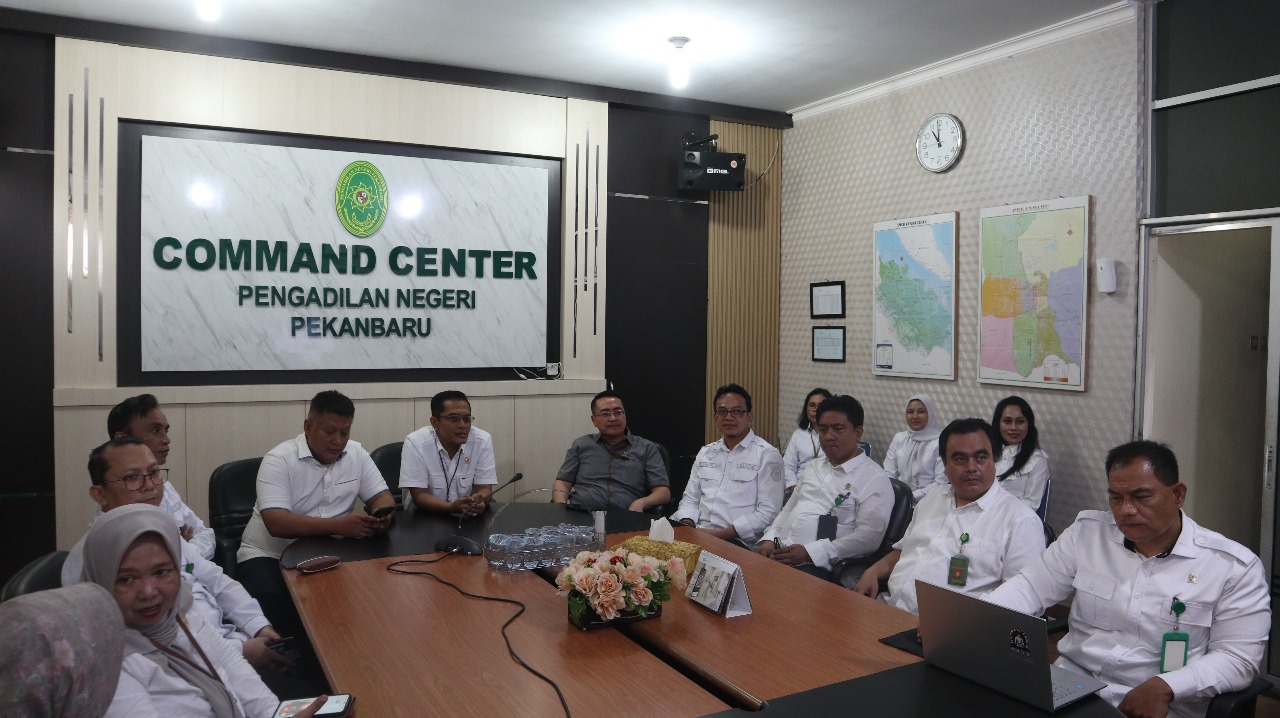 Pekanbaru - Senin, 05 Mei 2025. Bertempat di Ruang Command Center, Ketua Pengadilan Negeri Pekanbaru Bapak Raden Heru Kuntodewo, S.H., M.H. di dampingi oleh Wakil Ketua Bapak Delta Tamtama, S.H., M.H. dan dihadiri oleh Hakim, Calon Hakim pada Pengadilan Negeri Pekanbaru mengikuti Kegiatan Pembinaan dan Diskusi yang diadakan oleh Ketua Kamar Pidana secara Daring.
