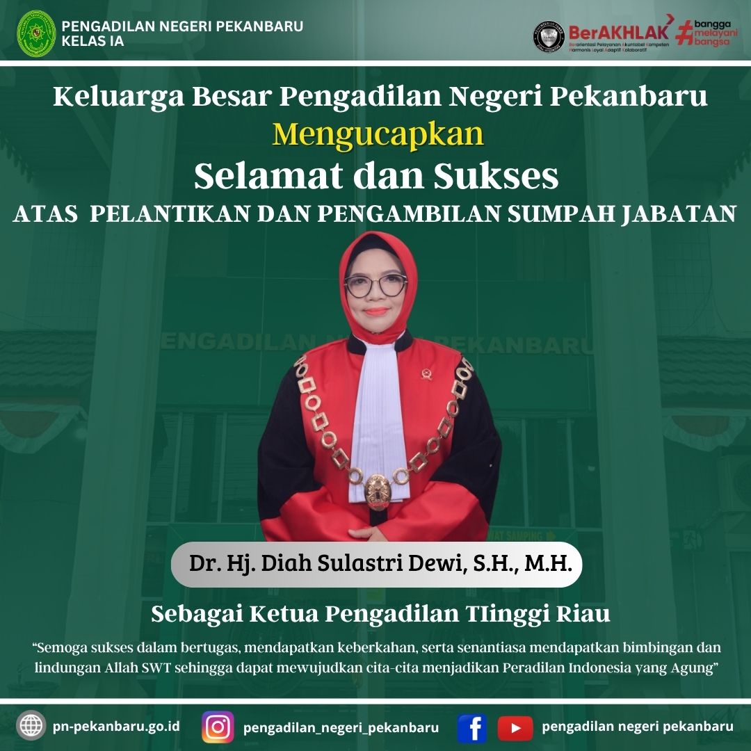 Selamat dan Sukses Atas Pengambilan Sumpah Jabatan dan Pelantikan Ibu Dr. Hj. Diah Sulastri Dewi, S.H., M.H. Sebagai Ketua Pengadilan Tinggi Riau.