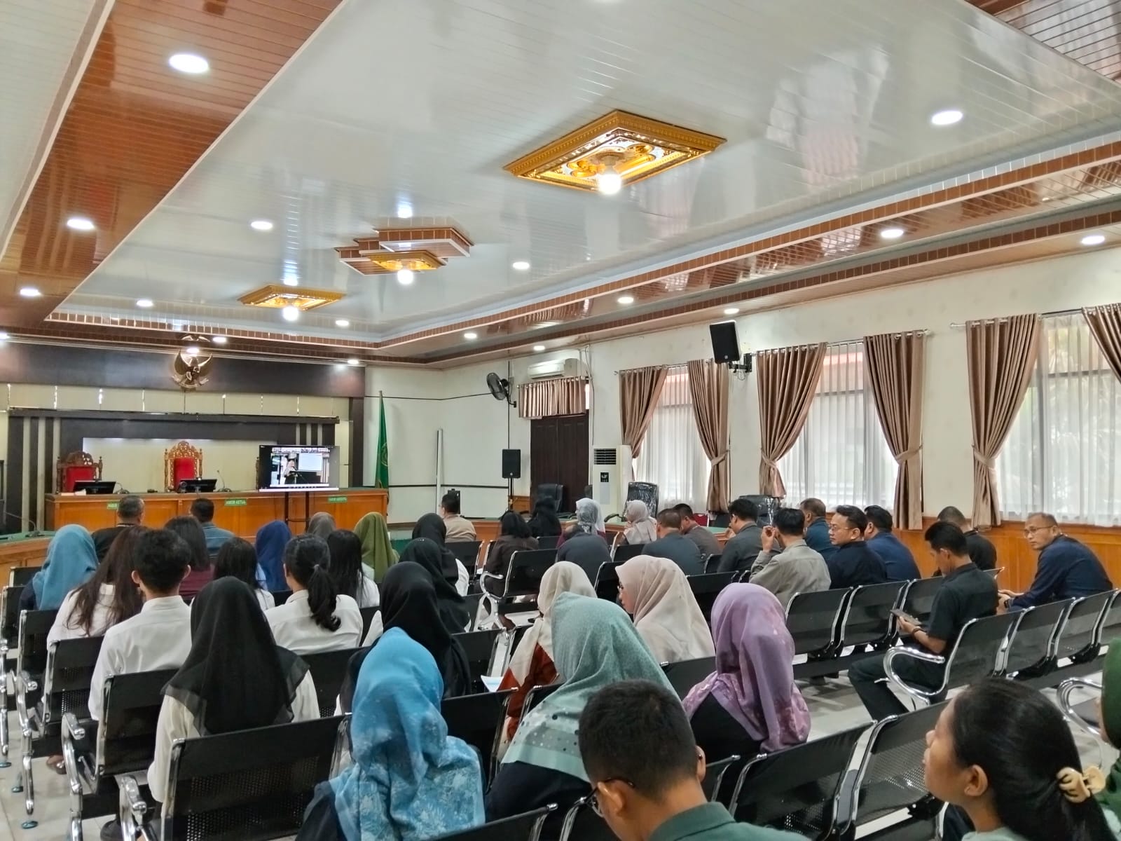 Pekanbaru - Rabu, 11 Juni 2025. Bertempat di Ruang Sidang Utama, Ketua Pengadilan Negeri Pekanbaru Bapak Bambang Trikoro, S.H., M.Hum. di dampingi oleh Wakil Ketua Bapak Delta Tamtama, S.H., M.H. dan dihadiri oleh Hakim Karir, Hakim Ad Hoc Tipikor, Hakim Ad Hoc PHI, Panitera, Sekretaris, Pejabat Struktural, Pejabat Fungsional, Pelaksana, dan Pegawai Pemerintah Non Pegawai Negeri (PPNPN) pada Pengadilan Negeri Pekanbaru mengikuti Pembinaan Ketua Pengadilan Tinggi Riau YM. Ibu Dr. Hj. Diah Sulastri Dewi, S.H., M.H. secara Daring.