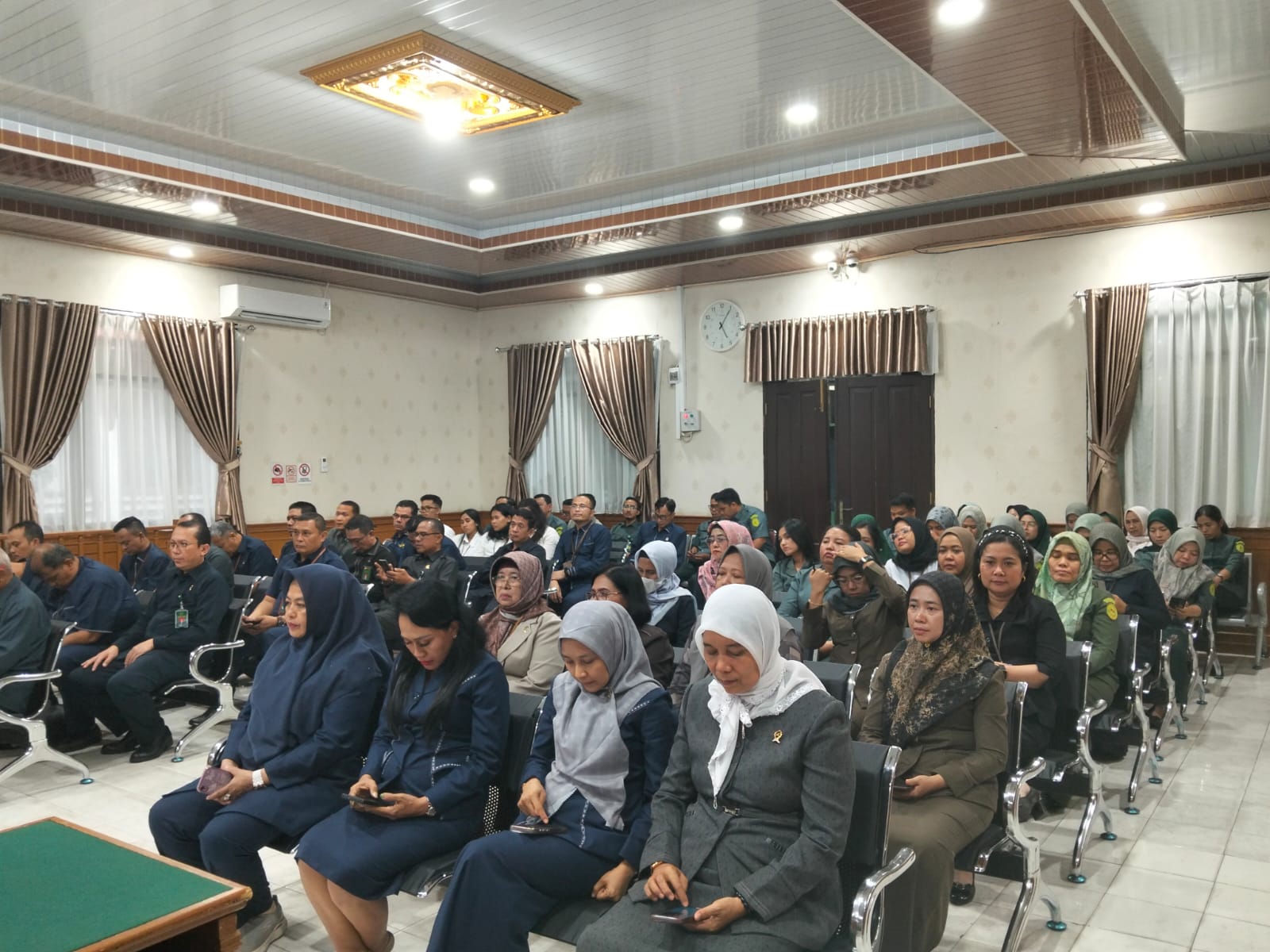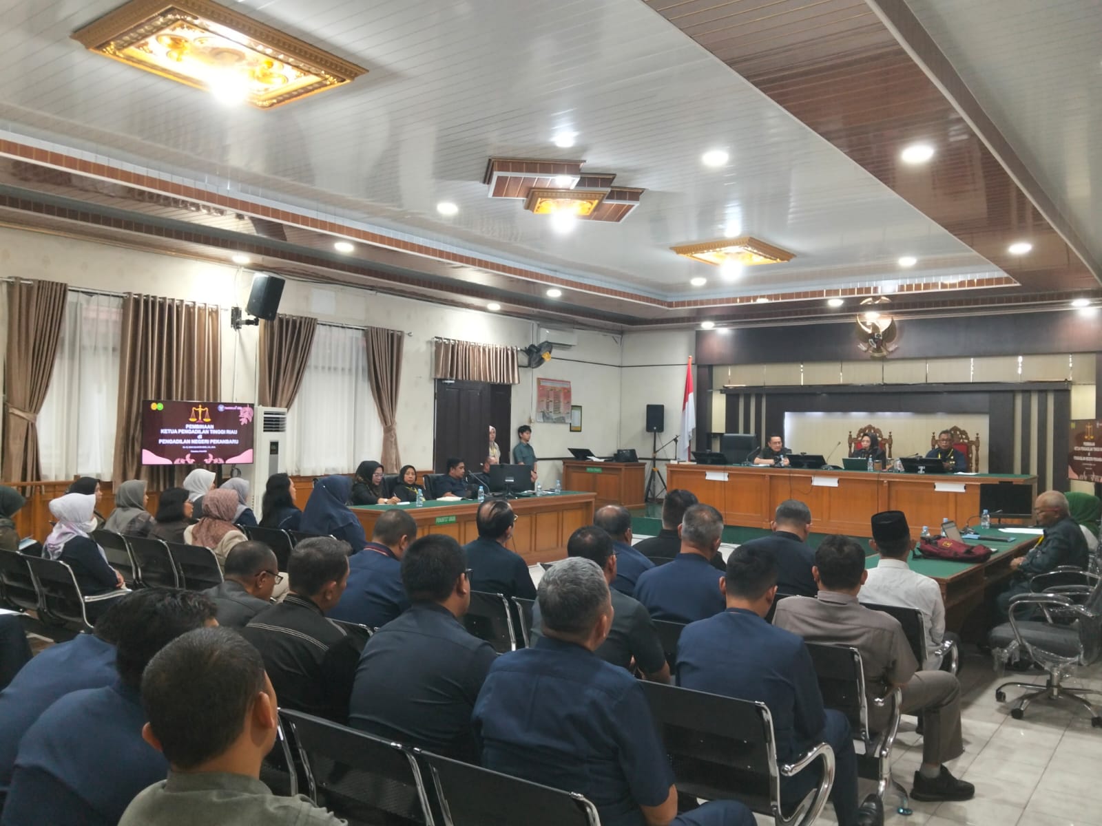 Pekanbaru - Selasa, 08 Juli 2025. Bertempat di Ruang Sidang Utama, Ketua Pengadilan Negeri Pekanbaru Bapak Bambang Trikoro, S.H., M.Hum. di dampingi oleh Wakil Ketua Bapak Delta Tamtama, S.H., M.H. dan dihadiri oleh Hakim Karir, Hakim Ad Hoc Tipikor, Hakim Ad Hoc PHI, Panitera, Sekretaris, Pejabat Struktural, Pejabat Fungsional, Pelaksana, dan Pegawai Pemerintah Non Pegawai Negeri (PPNPN) pada Pengadilan Negeri Pekanbaru mengikuti Pembinaan Ketua Pengadilan Tinggi Riau YM. Ibu Dr. Hj. Diah Sulastri Dewi, S.H., M.H.
