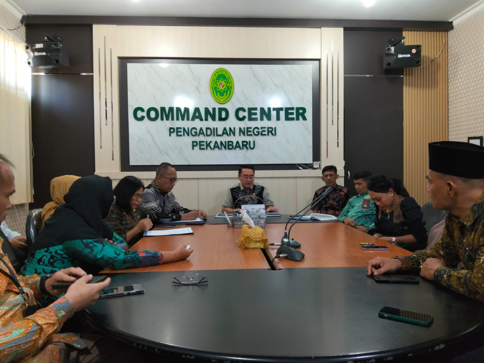 Pekanbaru – Jum’at, 18 Juli 2025. Bertempat di Ruang Command Center dilaksanakan Kegiatan Sosialisasi Hasil Rapat Koordinasi Ditjen Badilum, KPT dan WKPT Pada Pengadilan Negeri Pekanbaru. Sosialisasi tersebut dipimpin oleh Ketua Pengadilan Negeri Pekanbaru Bapak Bambang Trikoro, S.H., M.Hum., dan dihadiri oleh Para Hakim, Hakim Ad Hoc Tipikor, Hakim Ad Hoc PHI, Panitera, Sekretaris, Pejabat Struktural, Pejabat Fungsional. Narasumber Sosialisasi tersebut adalah Ketua Pengadilan Negeri Pekanbaru Bapak Bambang Trikoro, S.H., M.Hum.