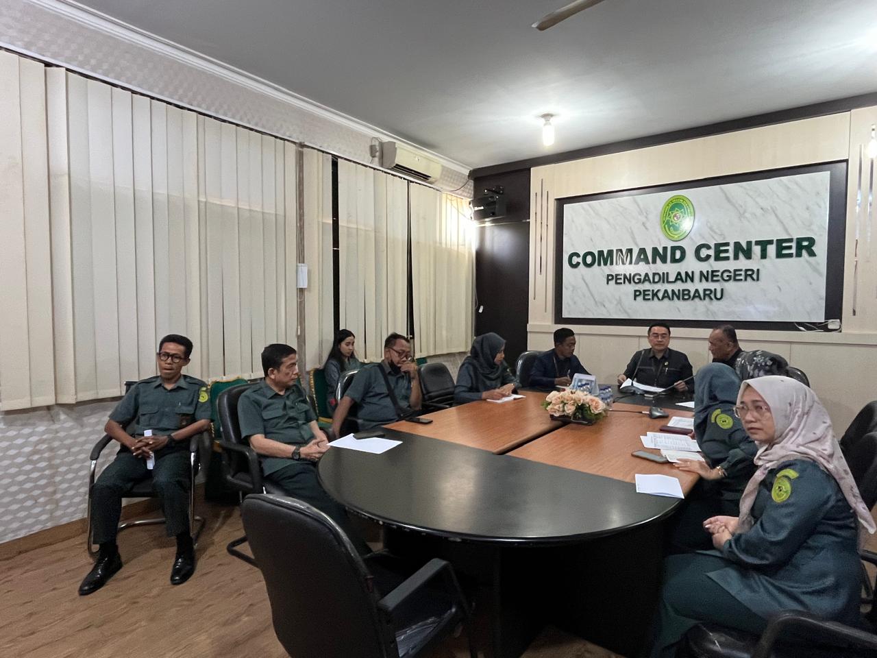 Pekanbaru - Selasa, 16 September 2025. Bertempat di Ruang Command Center, Ketua Pengadilan Negeri Pekanbaru Bapak Bambang Trikoro, S.H., M.Hum. di dampingi oleh Panitera Bapak Aslam Irfan Daulay, S.H., M.H. dan dihadiri oleh Panmud Perdata, Panmud PHI, Jurusita mengikuti Kegiatan Pendampingan Penginputan Aplikasi PERKUSI bagi Pengadilan Negeri Pekanbaru oleh Pengadilan Tinggi Riau secara Daring.