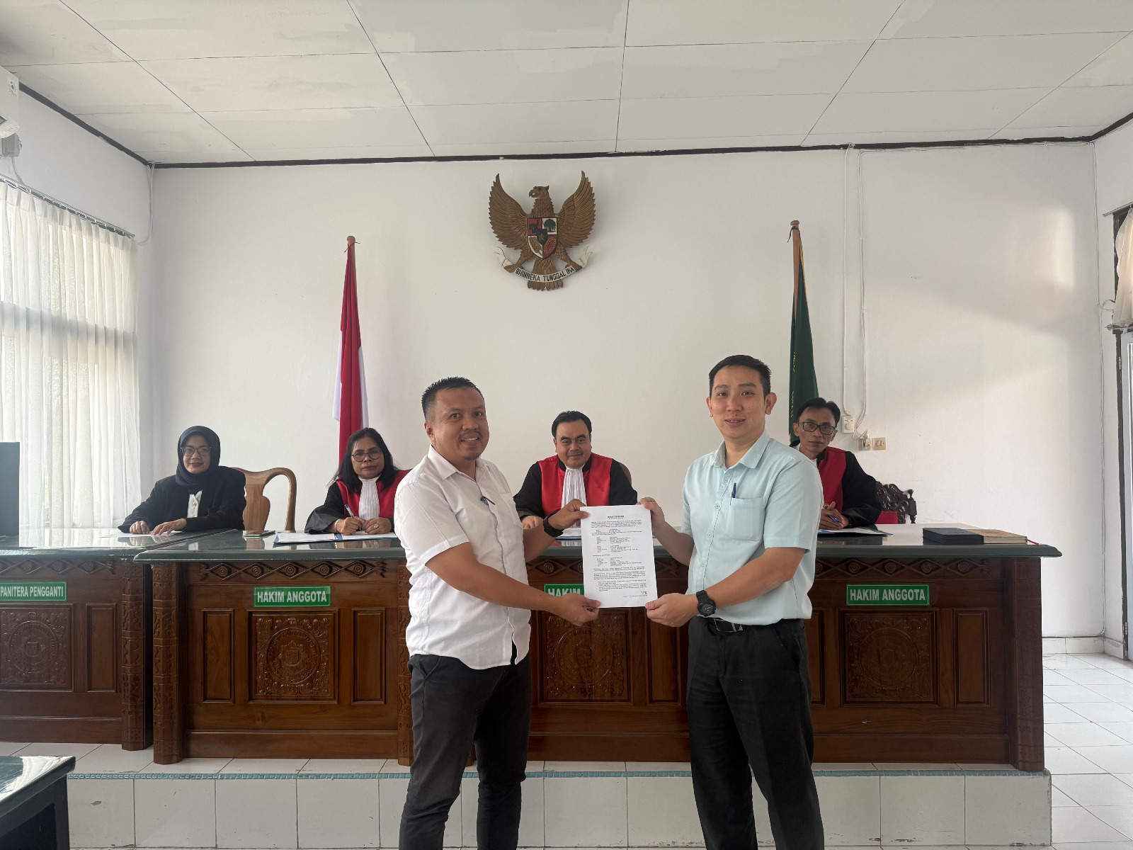 Pekanbaru – Senin, 05 Januari 2026. Perkara No. 97/pdt.Sus-PHI/2025/PN Pbr berhasil diselesaikan dengan Perdamaian dalam persidangan dengan Majelis Hakim Bapak Roni Susanta, S.H.,M.H., Ibu Rustan Sinaga, SH., Bapak Abdul Haris, S.H.