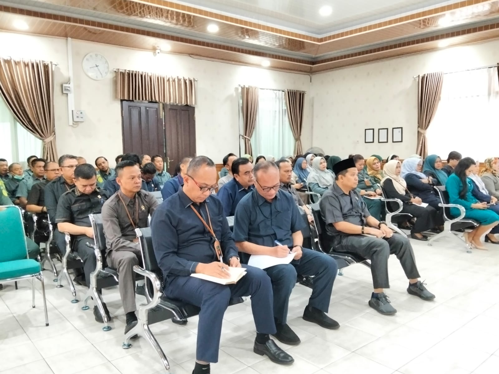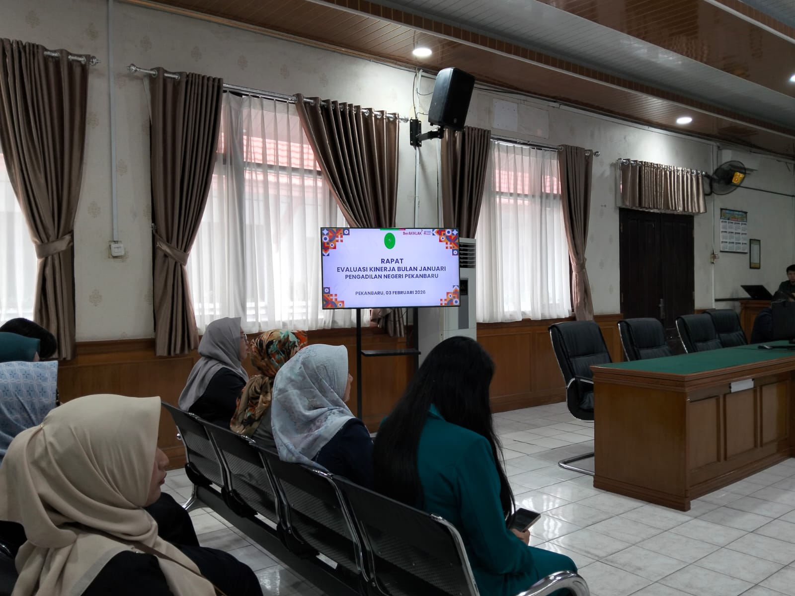 Pekanbaru - Selasa, 03 Februari 2026. Bertempat di Ruang Sidang Prof. R. Soebekti, SH dilaksanakan Rapat Evaluasi Kinerja Bulan Desember 2025. Rapat dan pembinaan tersebut dipimpin oleh Ketua Pengadilan Negeri Pekanbaru Bapak Arief Boediono, S.H., M.H. didampingi Wakil Ketua Pengadilan Negeri Pekanbaru Bapak Delta Tamtama, S.H., M.H. dan dihadiri oleh Para Hakim, Hakim Ad Hoc Tipikor, Hakim Ad Hoc PHI, Panitera, Sekretaris, Pejabat Struktural, Pejabat Fungsional, Pelaksana, dan Pegawai Pemerintah Dengan Perjanjian Kerja (P3K) pada Pengadilan Negeri Pekanbaru.